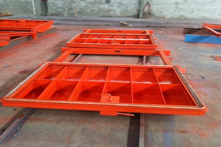 抗沖擊波密閉門用于井下爆炸材料庫和爆炸材料發(fā)放硐室,起隔離作用阻止爆炸沖擊波及爆炸產(chǎn)生的火焰、有毒氣體向外部巷道擴(kuò)散,由總回風(fēng)道排出,抗沖擊超壓能力為2500kpa??箾_擊波密閉門不但有抵抗沖擊波的能力,還具有通過活門張開的角度大小來調(diào)節(jié)庫房通風(fēng)量的作用,庫房內(nèi)發(fā)生火情時(shí),關(guān)閉通風(fēng)孔起隔離作用,可以說是一舉兩得的好門。